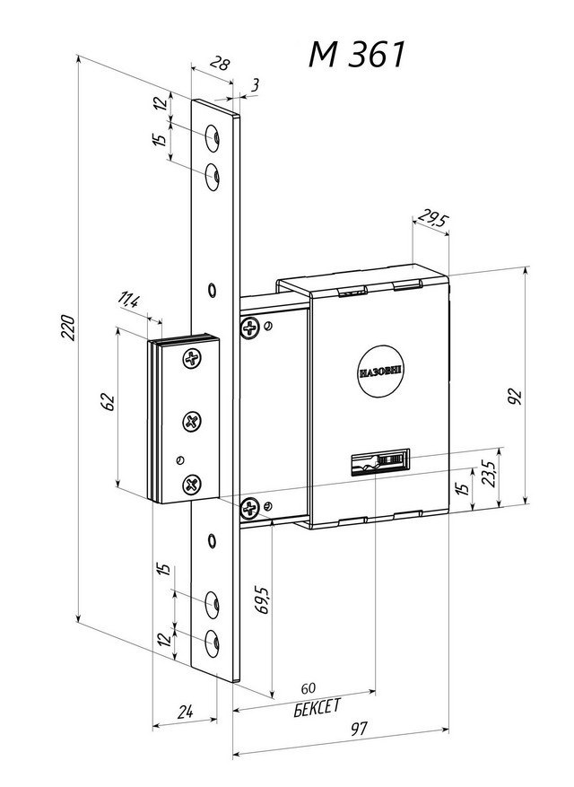 Врізний замок Радлок M361 з лицьовою планкою