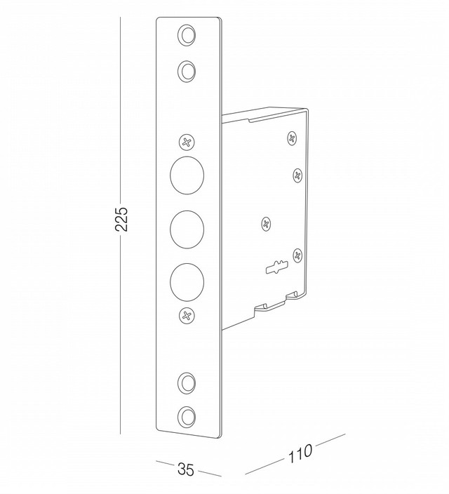 - Замок має отвори для кріплення протектора на серцевину та гвинтів стяжних ручок на розетці.