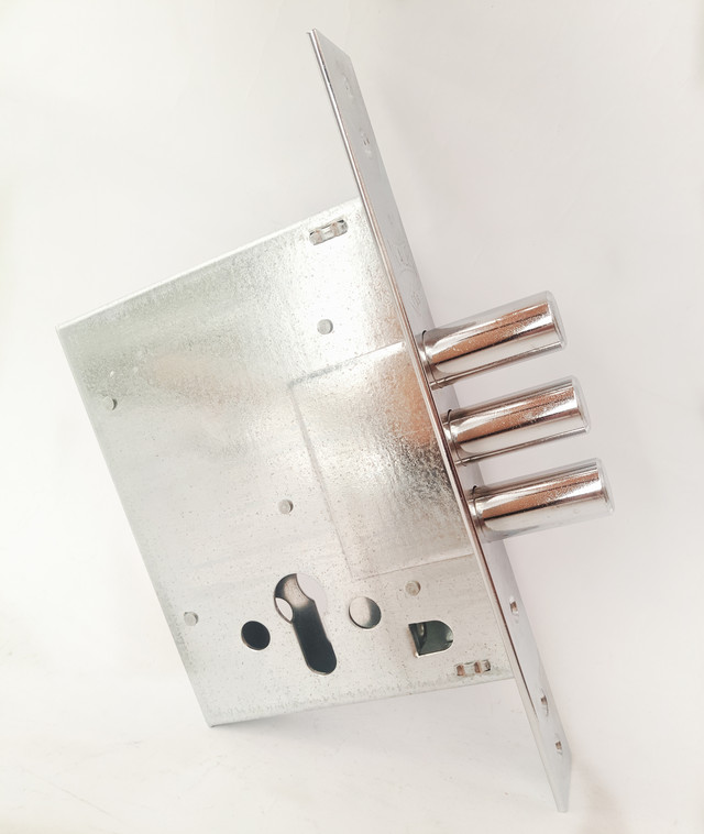 Врізний замок Kale 257 з циліндровим механізмом секретності. Призначений для установки в металеві та броньовані двері товщиною від 30 міліметрів. Виліт ригелів 34.5 мм, три сталевих ригеля діаметром 16 мм. BackSet - 60 мм.