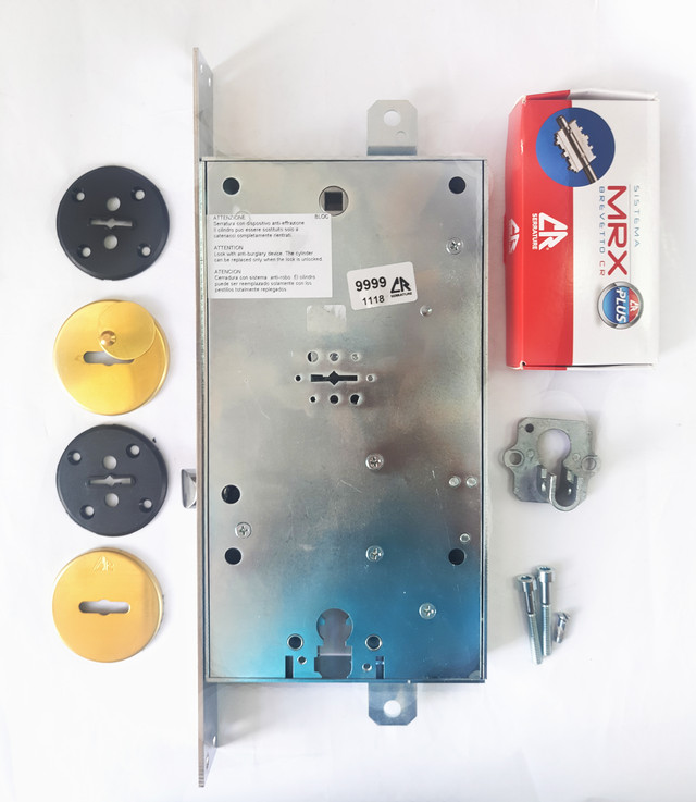 - комплектація — 4 декоративні накладки, напрямна каретка для фіксації циліндра, пластикова карта власника (для механізму MRX).