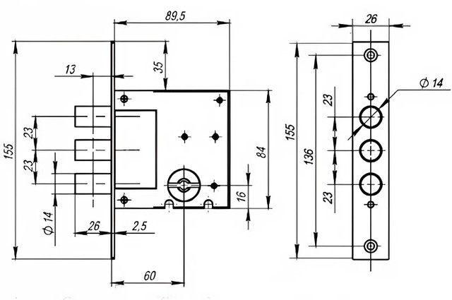 CLASS 10/S-60.3R14 — сувальдний замок, призначений для встановлення у дерев’яні та металеві двері товщиною 40–50 мм. Конструкція універсальна — монтаж можливий як у ліві, так і в праві двері. Замок відчиняється та зачиняється з обох боків ключем.